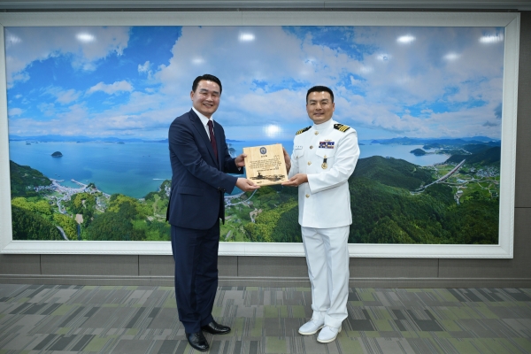 [아시아월드뉴스] 거제시는 13일 거제시장실에서 해군 이억기함과의 자매결연 22주년을 기념해 이억기함에 격려금을 전달하고 환담을 나누었다.