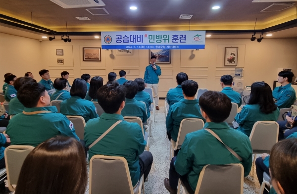 이날 오후 2시 공습경보 발령과 동시에 창녕군청 소속 직원들은 직장민방위대원의 안내에 따라 지정된 대피장소로 신속하게 이동 후 비상시 국민 행동 요령 교육을 받았다.