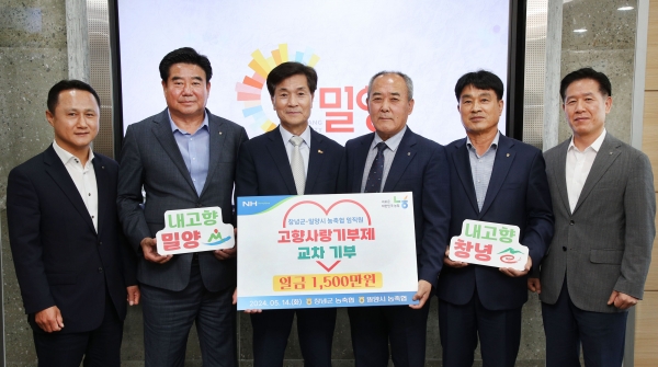 이날 행사는 밀양시 9곳, 창녕군 7곳의 단위농협 임직원 150명이 참여해 서로의 지역에 1,500만원씩 각각 기부하기로 약속함으로써 진행됐다.