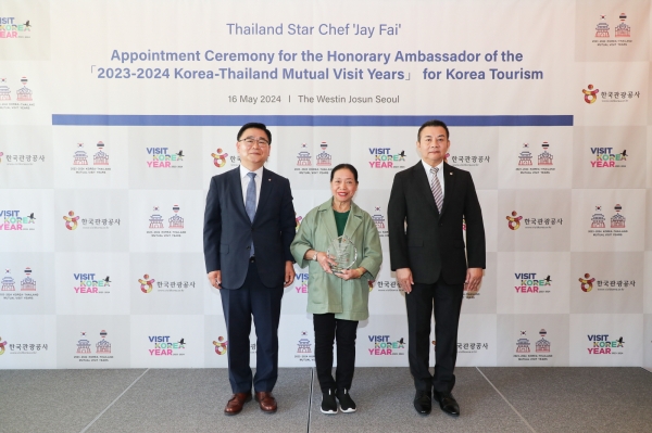[아시아월드뉴스] 한국관광공사는 16일 K푸드를 통한 한국의 매력을 알리기 위해 태국의 미쉐린 스타셰프 ‘쩨파이’를 ‘2023~2024 한·태 상호방문의 해 홍보대사’로 위촉했다.