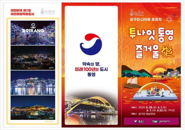 또한, 한국관광공사 ‘6월 여행가는 달’과 연계해 공연을 관람하는 관광객을 대상으로 통영 케이블카, 디피랑 등 관광시설 할인권도 증정해 체류형 관광 육성을 통한 야간관광 활성화에 기여할 예정이다.