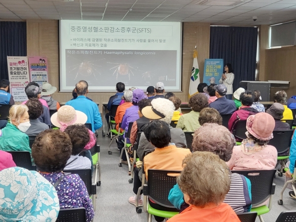이날 교육은 진드기 매개 감염병의 주요 발생 시기, 감염 경로 예방 수칙 등을 설명했으며 특히 치명률이 높은 중증열성혈소판감소증후군에 대해 중점 교육했다.