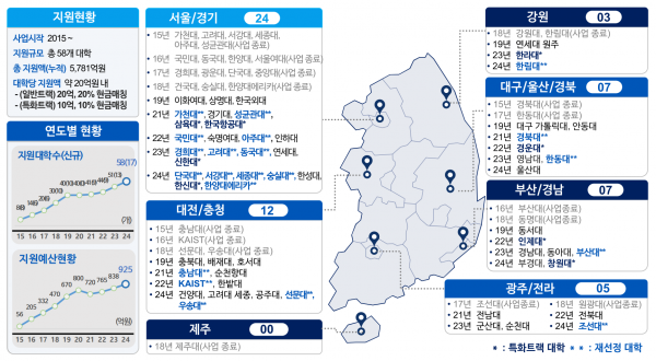 과기정통부는 올해 17개 대학을 선정하고 일반트랙 대학에는 각 10억원, 특화트랙에는 각 5억원을 지원할 예정이다.