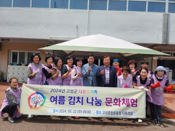 [아시아월드뉴스] 고성군 여성단체협의회는 22일 지역사회 봉사사업의 일환으로 고성군 여성단체협의회 소속 회원, 결혼이주여성, 관계자 등 20여명이 모인 가운데 ‘2024년 고성군 다문화가족 여름 김치 나눔 문화 체험’ 행사를 개최했다.