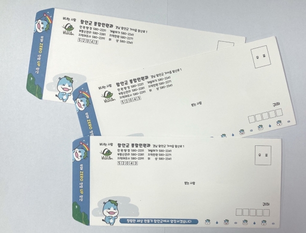군에서는 일상적인 우편물 발송 외에도 각종 민원서류를 담아가는 용도로 민원실에 비치된 행정봉투를 민원인들이 많이 사용한다는 점에 착안해, 많은 비용이 투입되는 홍보물을 추가 제작하지 않고 기존에 사용하고 있는 행정봉투를 적극 활용해 청렴 메시지가 담긴 행정봉투를 제작하게 됐다.