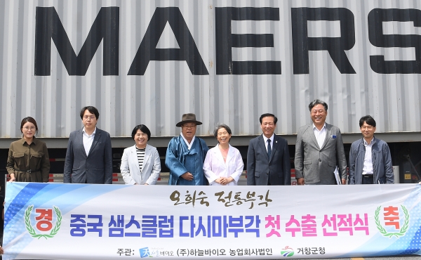 [아시아월드뉴스] 거창군은 지난 27일 ㈜하늘바이오 농업회사법인에서 구인모 거창군수를 비롯한 수출관계자들이 참석한 가운데 중국 ‘샘스클럽‘ 다시마 부각 첫 수출 기념 선적식을 진행했다.