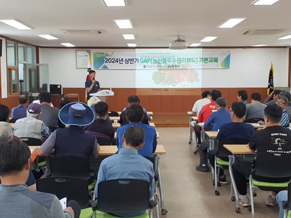 이날 교육은 농산물우수관리 기준 및 인증제도, 실천 요령 등 인증받기 위한 내용들로 진행됐으며 신규 인증 희망 농가 및 갱신 농가는 2년에 1회, 2시간 기본교육을 반드시 이수해야 한다.