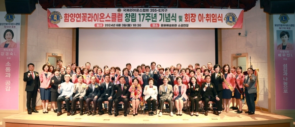 [아시아월드뉴스] 국제라이온스협회 355-E지구 함양연꽃라이온스클럽은 지난 3일 저녁 문화예술회관 소공연장에서 창립 제17주년 기념식 및 회장 이취임식을 개최했다.
