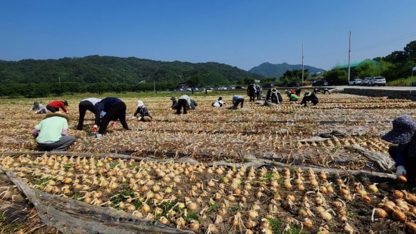 영농지원을 받은 농가주는 “양파수확은 기계화가 어려워 수확에 많은 인력이 필요하고 부상 등으로 어려움이 많았는데, 직원들의 일손돕기가 큰 힘이 됬다“라고 감사함을 표시했다.