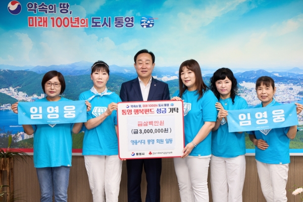 [아시아월드뉴스] 통영시는 12일 임영웅 팬클럽 ‘영웅시대 통영’에서 임영웅의 34번째 생일을 기념해 관내 어려운 소외계층에게 전달해 달라며 성금 300만원을 기탁했다고 밝혔다.