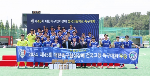 그 결과 12일 오전 11시 함안스포츠타운 인조잔디구장에서 열린 결승전에서 격렬한 경기를 펼친 가운데 경기수원삼성U18매탄고가 부산아이파크U18개성고를 3대0로 누르고 대망의 우승을 차지했다.
