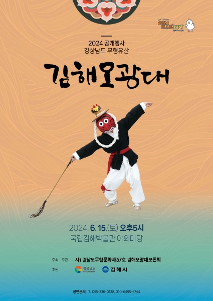 김해오광대는 정월대보름에 평안함과 경사로움을 기원하며 경남지역을 중심으로 내려온 민속가면극으로 2015년 정통성과 전승가치를 인정받아 도 무형유산으로 지정됐고 2022년 유네스코 인류무형유산에 등재된 한국의 탈춤 18종 중 하나에 포함됐다.