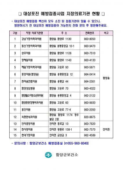 대상포진 예방접종 대상자는 1년 이상 함양군에 주민등록을 두고 있는 65세 이상 어르신이며 과거에 대상포진 예방접종 이력이 있거나 면역저하자 등 대상포진 접종 금기증이 있는 분들은 접종 대상에서 제외되며 또한 대상포진을 이미 앓은 경우에는 회복 6~12개월 이후에 접종을 받을 수 있다.