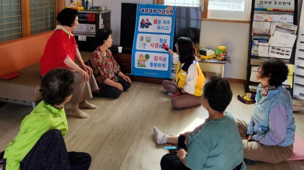 정정자 건강관리과장은 “폭염특보가 발효되면 건강수칙을 지키는 것만으로도 온열질환 예방이 가능하다”며 “충분히 물을 마시고 더운 시간대에는 휴식하기 등 건강수칙을 준수해달라”고 당부했다.