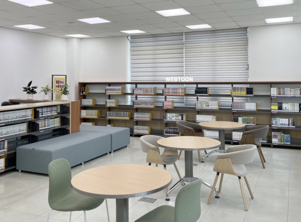 웹툰코너에는 1,556권의 다양한 장르의 도서가 비치되어 있어 이용자에게 신선한 재미와 휴식을 제공할 것으로 기대된다.