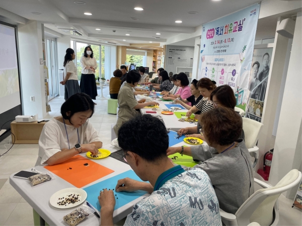 ;지난 3월부터 6월까지 총 4회 운영한 독서 치유교실에서 참여자들은 ‘자기 돌봄의 그림책 테라피’라는 주제로 독서테라피, 그림책테라피, 글쓰기테라피, 독서푸드테라피 활동을 통해 그림책으로 자신을 연결하며 마음의 치유와 성찰하는 시간을 가졌다.