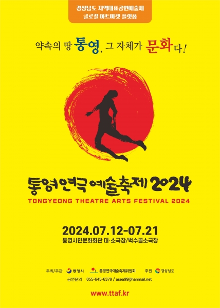 [아시아월드뉴스] 통영시와 통영연극예술축제위원회가 주최, 주관하고 경상남도가 후원하는 ‘2024 제16회 통영연극예술축제’가 오는 7월 12일부터 7월 21일까지 열흘간 통영시민문화회관, 벅수골 소극장, 통영시 일원에서 개최한다.