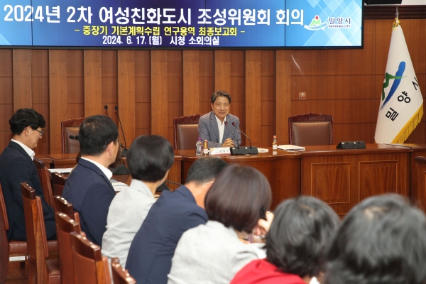 여성친화도시 조성위원과 관련 부서장 등 20여명이 참석한 이날 회의에서 밀양시 여성친화도시 조성 중장기 기본계획 수립 연구 용역 최종보고회’가 함께 진행됐다.
