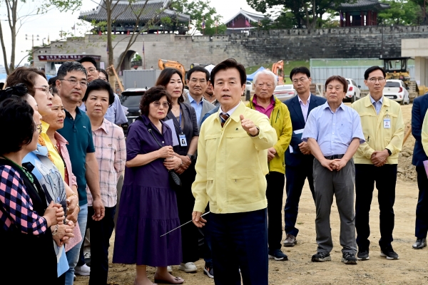 [아시아월드뉴스] 조규일 진주시장은 지난 17일 제 모습을 조금씩 드러내기 시작한 본성동 촉석문 앞 ‘진주대첩광장’ 조성사업 현장을 방문해 추진상황을 점검하고 관계자들을 격려하면서 안전사고 예방에 철저를 기할 것을 당부했다.