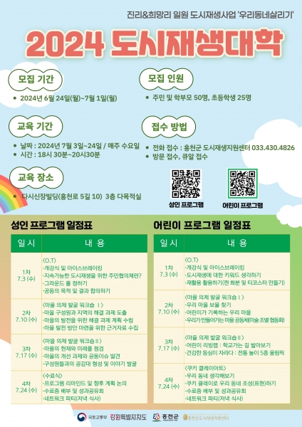 어린이 대상의 도시재생대학은 강원권에서 최초로 진행되며 단체 활동을 통해 어린이가 직접 마을의 의제를 발굴하고 해결책을 모색해보는 활동으로 진행된다.