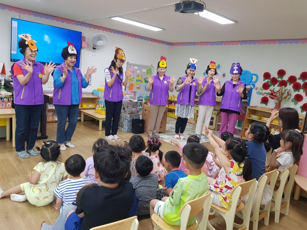 이날 교육은 봉사단이 일일교사가 되어 원아들에게 종이 팩 분리배출의 중요성을 설명하고 함께 간식으로 마신 우유 팩을 직접 세척하고 미리 설치된 분류함에 배출하는 체험을 끝으로 마무리됐다.