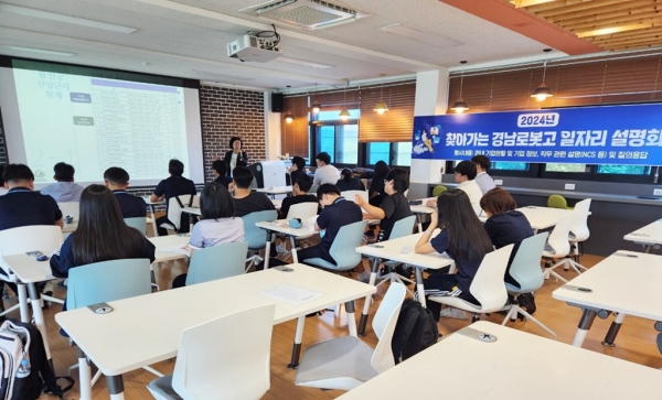 [아시아월드뉴스] 함안군은 25일 오전 10시 경남로봇고등학교 도서관에서 취업 준비 중인 3학년 학생 40여명을 대상으로 ‘2024년 찾아가는 경남로봇고 일자리 설명회’를 개최했다.