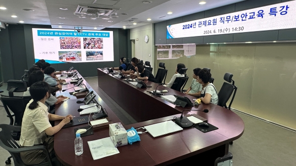 이번 교육은 CCTV 관제교육센터 채수창 대표를 초빙해 △주의력 있는 관제 방법 △사건 유형별 대처요령 △관심을 가져야 할 관제 사례 등 관제요원 역량 강화에 도움을 주는 내용으로 진행했다.