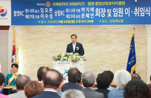[아시아월드뉴스] 국제로타리 3590지구 함양·함양상림로타리클럽은 지난 24일 저녁 성림웨딩홀에서 2024~2025년도 회장 및 임원 이·취임식을 개최했다.