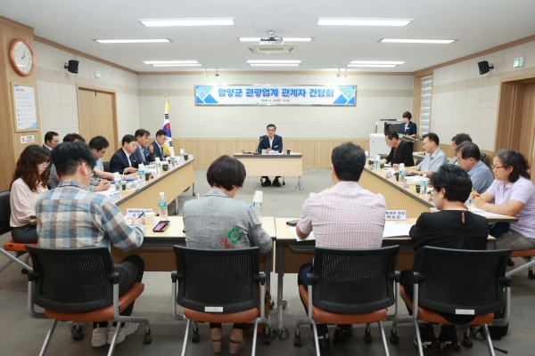 [아시아월드뉴스] 함양군은 24일 오후 군청 소회의실에서 관광업계 관계자를 대상으로 군의 관광 시책 추진사업을 공유하고 지역관광 활성화 방안을 모색하는 간담회를 가졌다.