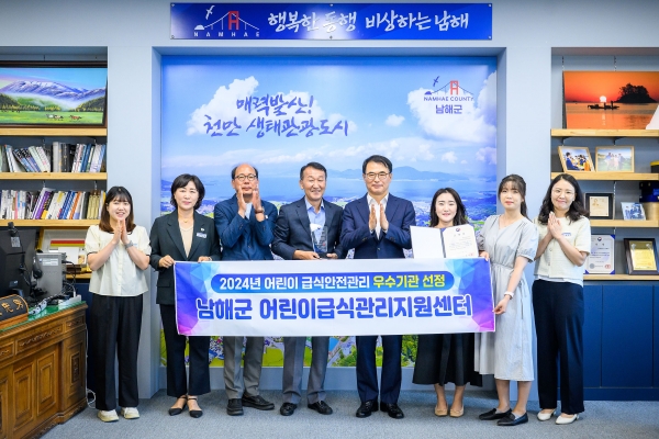 [아시아월드뉴스] 남해군 어린이급식관리지원센터가 어린이 급식 안전관리에 기여한 공을 인정받아 급식안전관리 유공 식품의약품안전처장 표창을 수상했다.