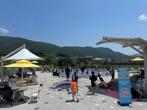 물놀이장 주변 곳곳에 그늘막과 평상이 설치되어 있어 무더운 날씨에도 시원하게 물놀이를 즐길 수 있으며 미끄럼틀, 바닥분수, 물터널 등 다양한 놀거리가 있어 아이들이 쉴 틈이 없다.