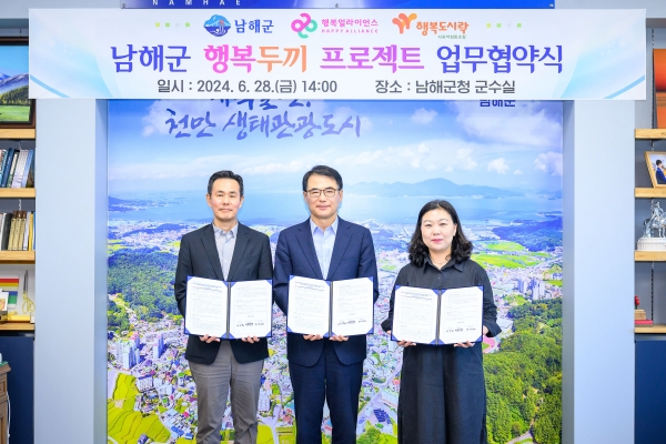 [아시아월드뉴스] 남해군은 6월 28일 군청 군수실에서 행복얼라이언스·행복나래와 함께 결식 우려 아동들에게 도시락을 지원하는 ‘행복두끼 프로젝트’ 추진을 위한 업무협약을 체결했다.