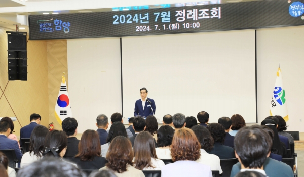 [아시아월드뉴스] 함양군은 7월 1일 오전 10시 군청 대회의실에서 직원 120여명이 참석한 가운데 7월 정례조회를 가졌다.
