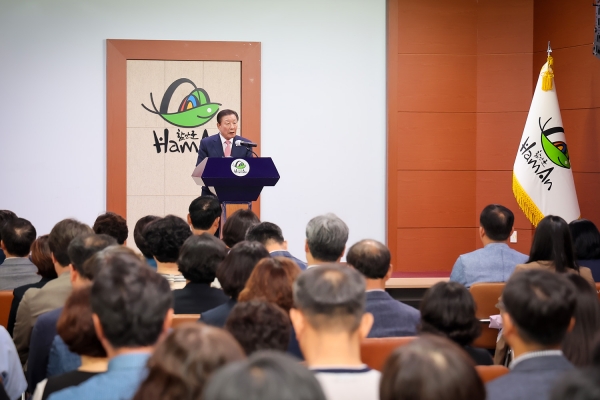 민선8기 취임 2주년을 맞아 정례조회를 주재한 조근제 군수는 “지난 2년간 ‘군민과 함께 만드는 행복도시 함안’을 만들기 위해 모든 분야에서 괄목한 성과를 얻을 수 있었던 것은 직원여러분들이 함께 노력해 준 덕분”이라며 “경남의 중심인 함안을 역사와 미래가 함께하는 고품격 함안으로 만들기 위해 남은 임기 2년도 최선을 다하겠다”고 말했다.