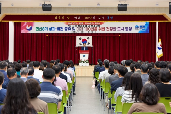 [아시아월드뉴스] 통영시는 지난 2024년 7월 1일 시청강당에서 직원 250여명이 참석한 가운데 민선8기 3년차를 시작하는 첫 정례조회를 열고 지난 2년간의 주요시정 성과 등을 되돌아보는 시간을 가졌다고 전했다.