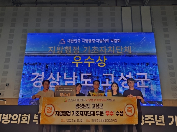 [아시아월드뉴스] 고성군이 지난 6월 28일부터 30일까지 대전컨벤션센터 제2전시장에서 열린 ‘2024년 대한민국 지방행정·지방의회 박람회’에서 기초자치단체 부문 우수상을 수상하는 쾌거를 올렸다.