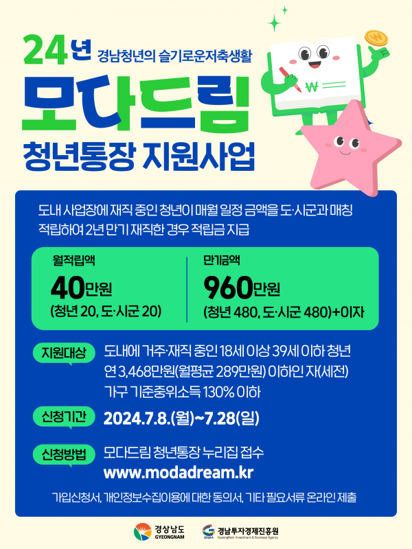[아시아월드뉴스] 거제시는 2024년 모다드림 청년통장 지원사업에 참여할 청년을 7월 8일부터 7월 28일까지 모집한다.