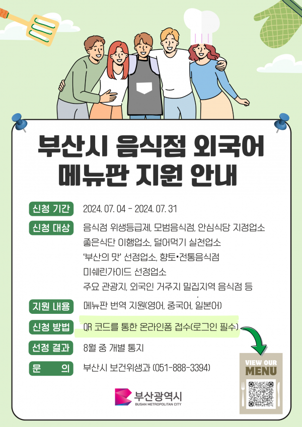 외국인들에게 더욱 나은 행정서비스를 제공해 부산의 외식경쟁력이 강화될 것으로 기대된다.