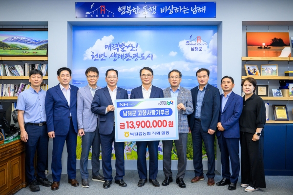 [아시아월드뉴스] 남해군은 지난 3일 북강릉농협 직원들이 한마음 한뜻으로 모은 고향사랑기부금 1,390만원을 전달했다고 밝혔다.