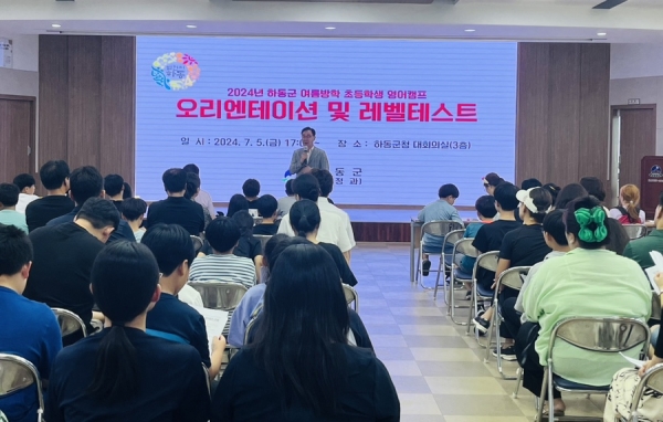 [아시아월드뉴스] 하동군은 지난 5일 군청 대회의실에서 ‘여름방학 초등학생 영어 캠프 사전설명회’를 실시했다고 밝혔다.