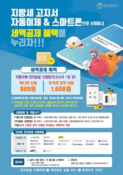 김명곤 세정과장은 “지방세 전자송달 서비스를 이용하면 바쁜 일상에서 놓치기 쉬운 지방세를 기한 내에 납부하고 세액공제 혜택도 받을 수 있으며 종이 고지서 사용 감축으로 탄소중립 실현에도 기여할 수 있으니 적극적인 참여를 당부드린다”고 말했다.