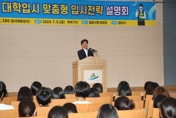 [아시아월드뉴스] 밀양시는 지난 5일 오후 7시 시청 대강당에서 입시전문가인 허용회 경남 입시전략연구소장을 초청해 2025학년도 진로 진학 입시설명회를 개최했다고 밝혔다.
