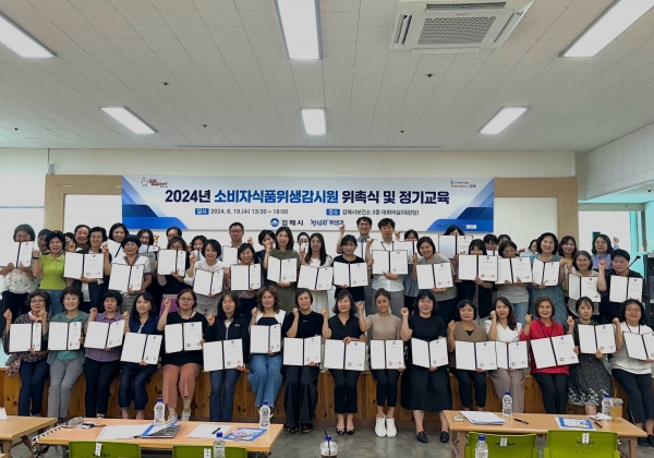 이날 위촉장 수여와 함께 소비자식품위생감시원의 청렴결의문 낭독 및 결의 다짐을 위한 서명을 진행하며 청렴 의지를 다졌으며 소비자식품위생감시원 실무를 위한 △식품위생감시의 이해 △식품 위생법 교육으로 전문성을 확보했고 △자살예방 생명지킴이 교육을 실시해 식품안전 뿐만 아니라 생명안전 지킴이로서의 역량을 확보했다.