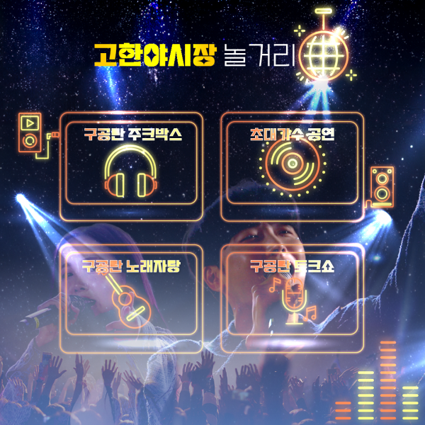 고한구공탄시장 상인회가 주관하는 주말야시장은 지난해 다양한 맛과 멋을 선보이며 성공적인 운영으로 ‘전통시장 및 상점가 육성 강원도 공모사업’에 2년차 사업으로 선정되어 오는 7월 12일부터 2주간 시범운영 후 7월 26일부터 9월 7일까지 매주 금·토요일 정식 운영을 통해 고한의 밤을 밝히며 관광객들의 입맛을 사로잡을 예정이다.