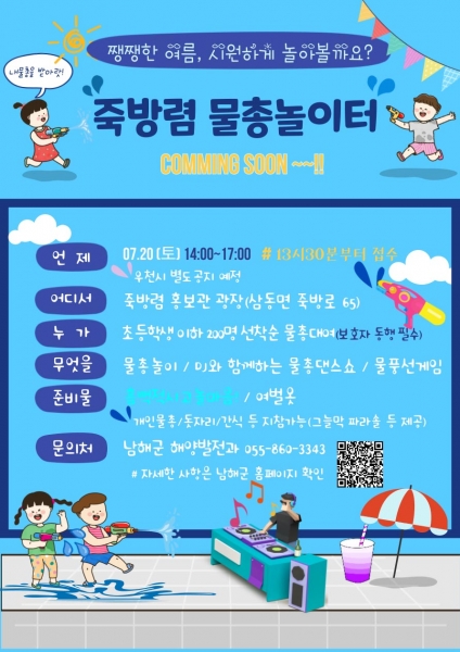 남해군 관계자는 “무더운 여름을 맞이해 시원한 물총놀이로 가족들과 함께 행복한 추억을 만드는 시간이 되었으면 한다”고 말했다.