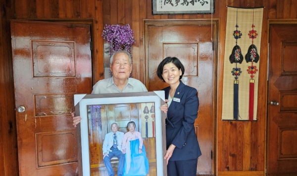 사진을 받은 참전유공자 어르신은 “몸이 불편해서 사진관을 가지 못하는데, 70년 지기 아내와 사진을 찍을 수 있어 정말 고맙다”며 감사의 마음을 전했다.