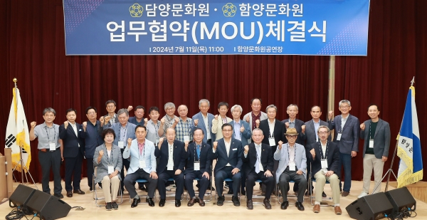 [아시아월드뉴스] 함양문화원과 담양문화원이 11일 오전 함양문화원 공연장에서 문화예술 진흥을 위해 상호 협력을 위한 협약을 맺었다.