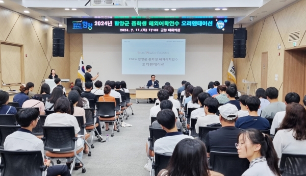 [아시아월드뉴스] 경남 함양군의 대표적인 글로벌 인재육성 프로그램 중 하나인 함양군 중학생 해외어학연수의 출발을 앞두고 11일 오후 5시 군청 대회의실에서 학생과 학부모, 인솔자 등 70여명이 참석한 가운데 사전 오리엔테이션이 열렸다.