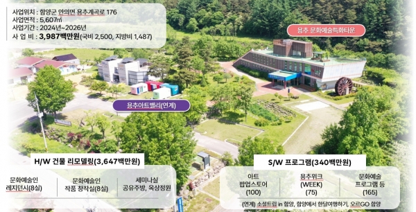 이번 공모사업은 안의면 하원리 일원에 2023년에 폐관된 함양약초과학관을 리모델링해, 인접한 용추아트밸리의 지역자원과 연계한 예술과 관광을 접목한 새로운 형태의 도농 상생의 지역 문화예술 거점을 조성코자 계획됐다.