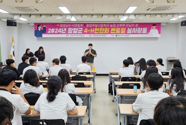 이날 봉사활동에는 청년 4-H 회원 10명과 미래 함양군 청년 농업인을 목표로 학업에 힘쓰고 있는 함양제일고등학교 4-H 회원 30명이 참여해 우수사례 강의 및 품목별 멘토·멘티 활동, 체험 등을 통해 소통하는 시간을 가졌다.